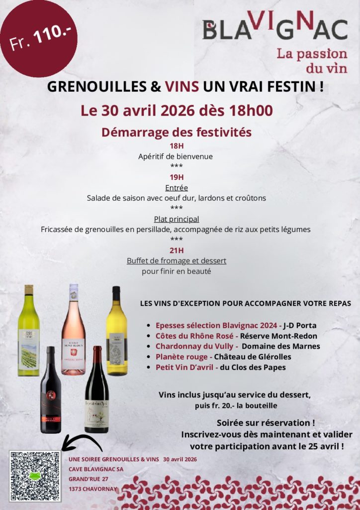 SOIREE GRENOUILLES & VINS - jeudi 30 avril 2026